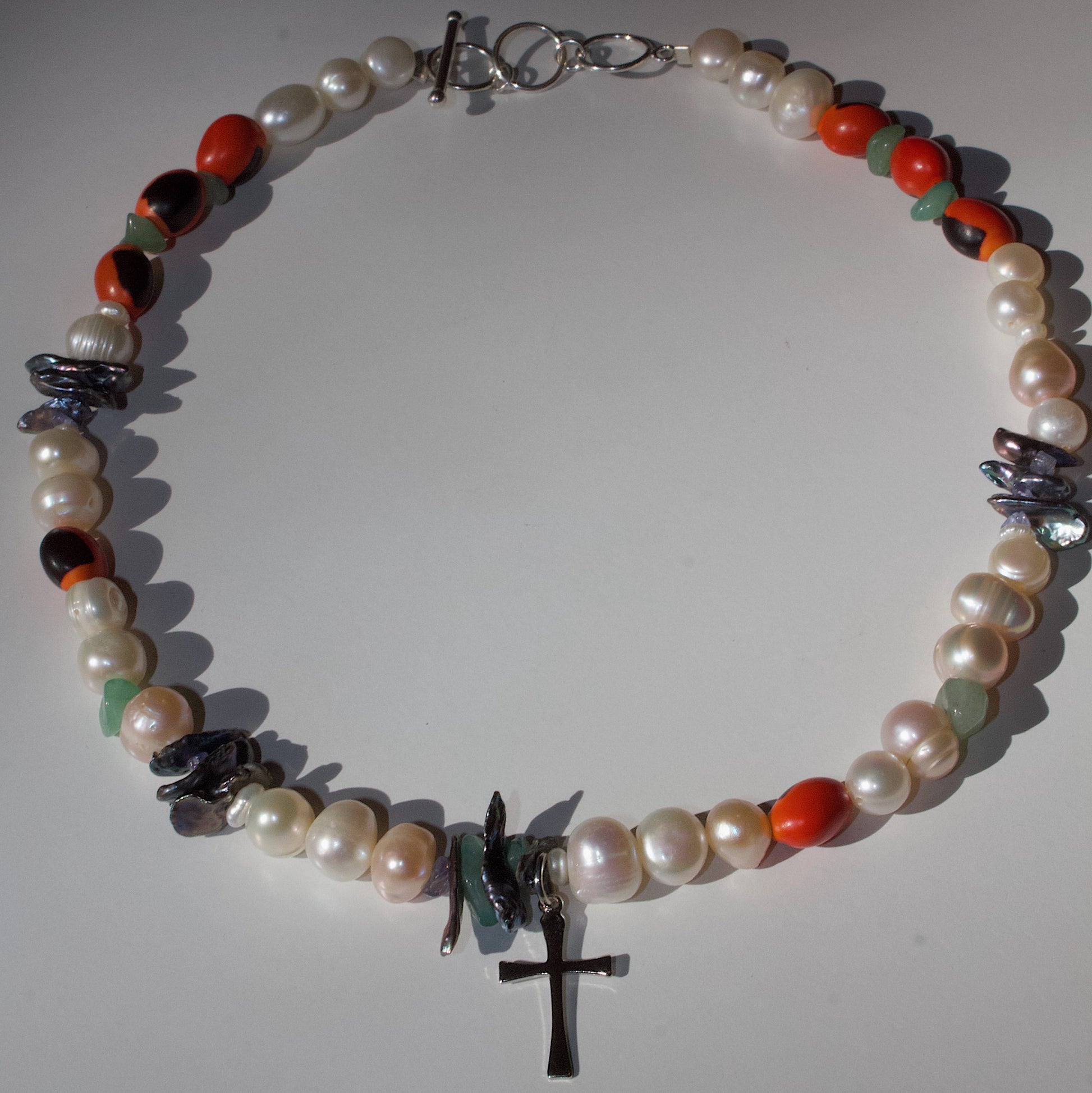 A thoughtfully curated blend of Freshwater & Akoya pearls, Wayruru seeds, tanzanite, and agate, creating a piece that not only captivates the eye but also nurtures the spirit.