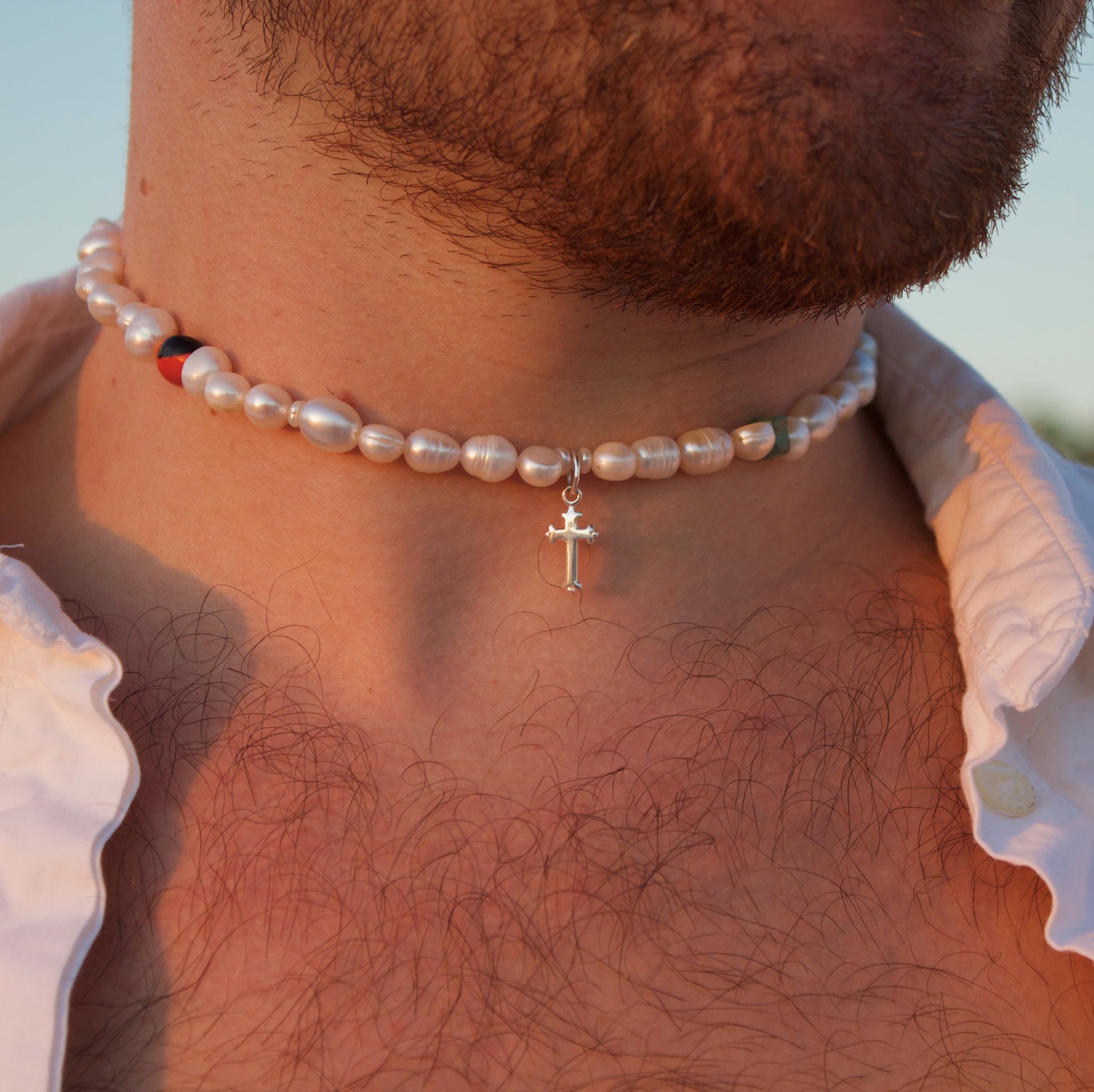 A mix of Freshwater pearls, Wayruru seeds & Mint Agate.