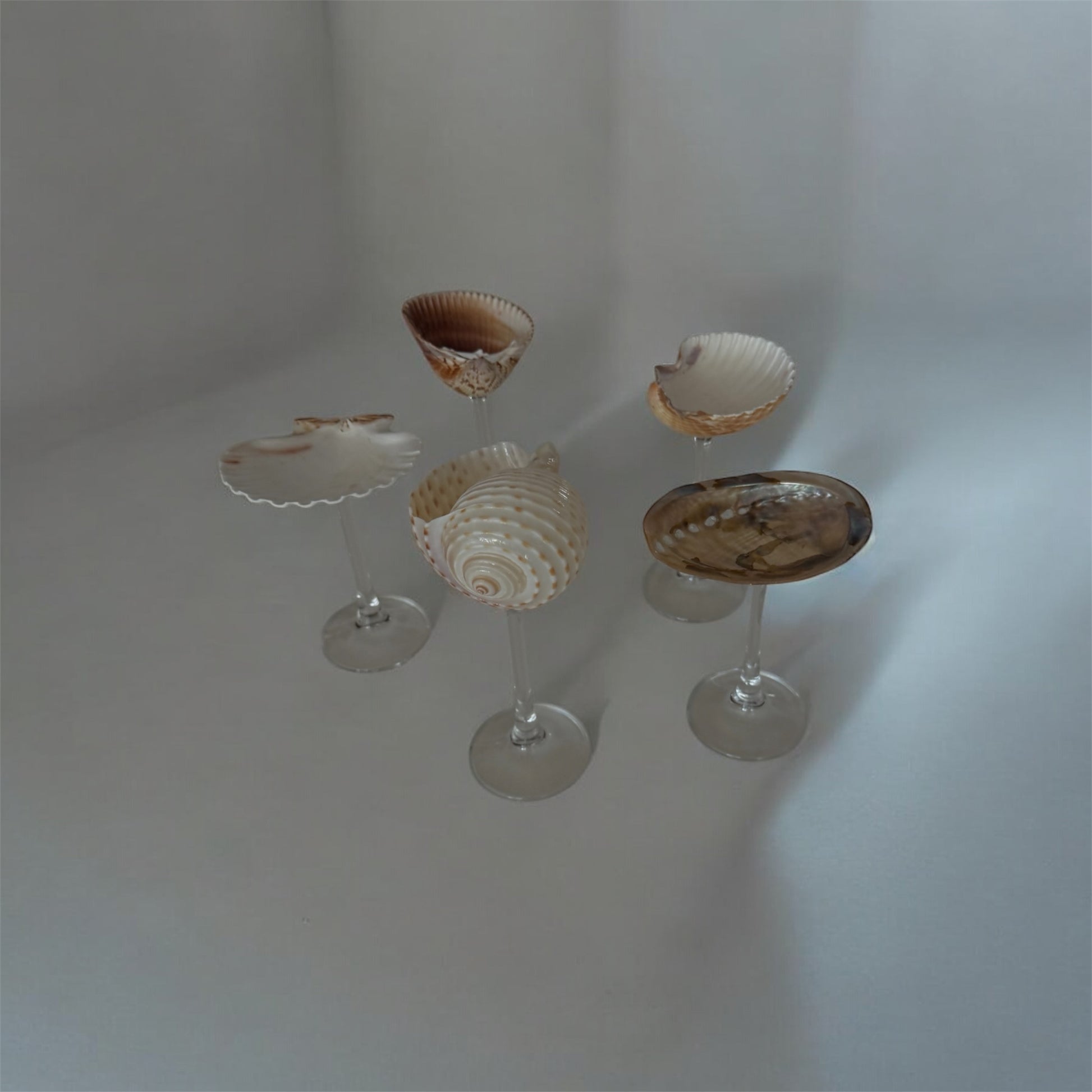 The Shell Glassware Gift Set includes five glasses made from real shells, each piece, naturally different. Designed for special occasions and to elevate your space.