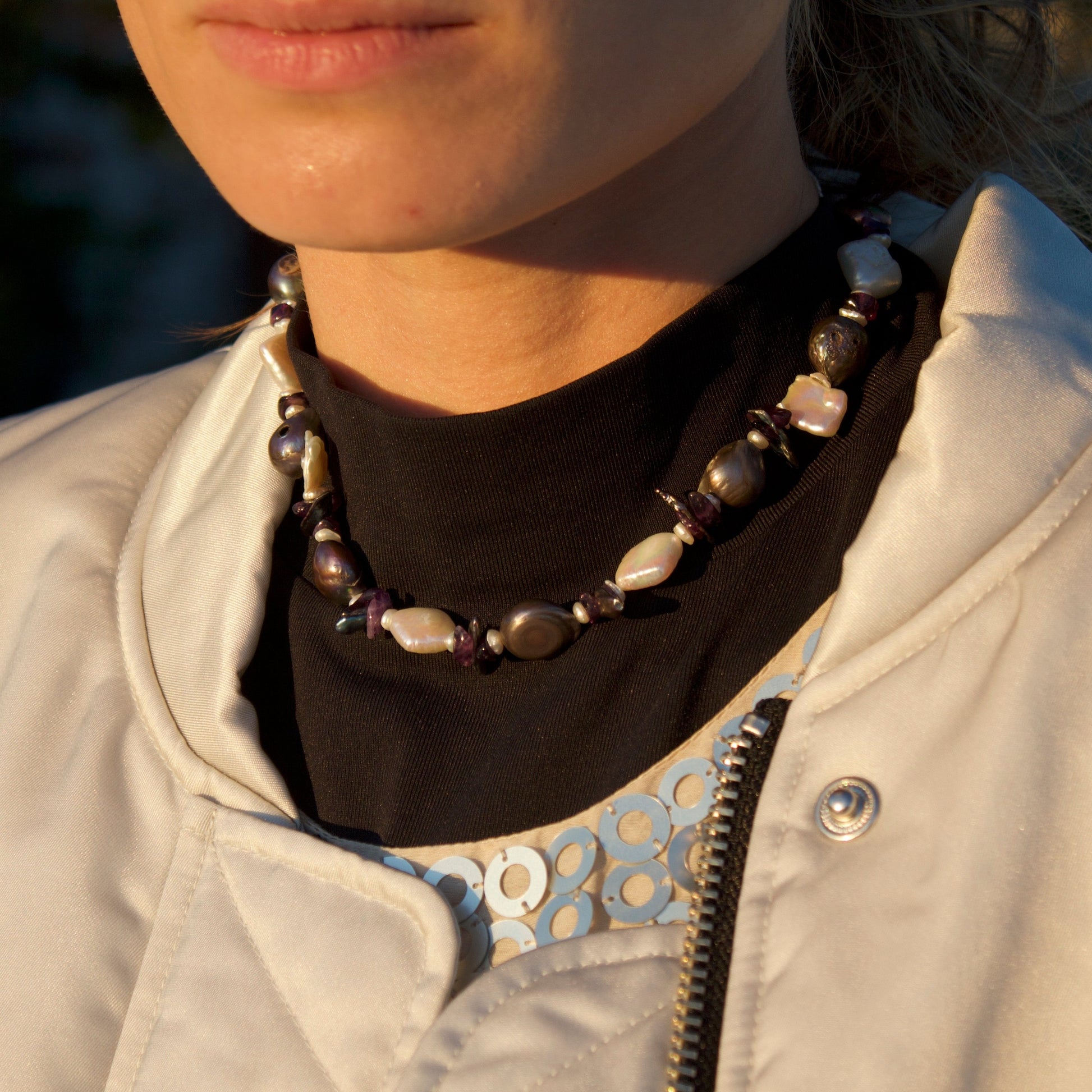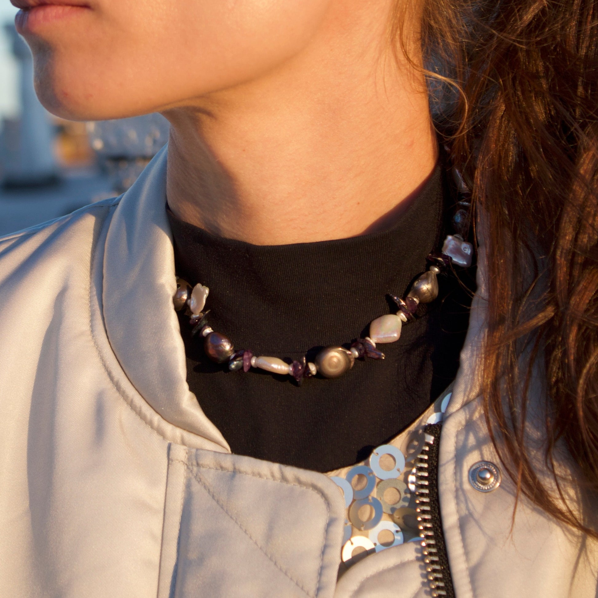 A mesmerizing blend of natural Tahitian and baroque Biwa pearls, paired with the rich violet hues of amethyst for a touch of elegance and harmony.